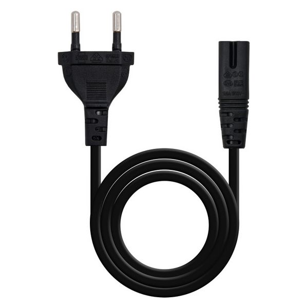 Cabo alimentação com forma de 8 para cargadores de portateis, dispositivos AV etc. Fabricado com conductor 100% cobre de AWG18 para dispositivos com consumo inferior a 1500W.