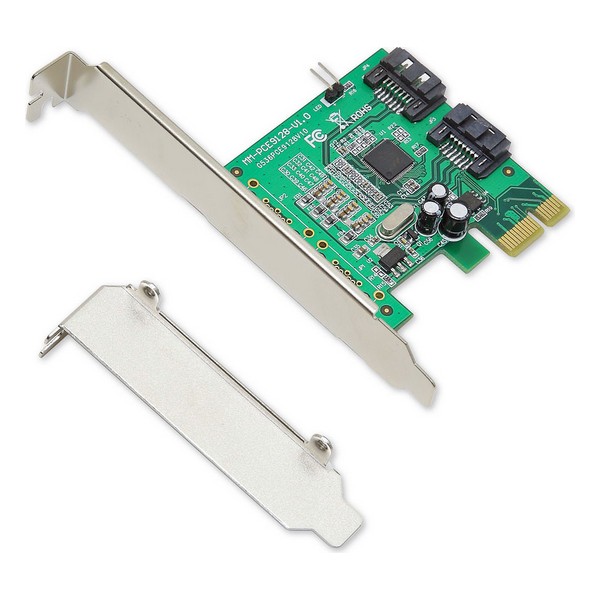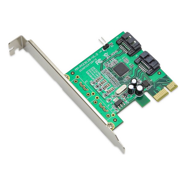 SYBA SI-PEX40061. Interface do host: PCIe, Interface de saída: SATA, Tipo de interface em série: SATA. Cor do produto: Verde, Propósito: PC. Chipset: Marvell 88SE9120, Taxa de transferência de dados (máx.): 6 Gbit/s. Sistema operativo Windows compatível: Windows 7 Home Basic,Windows 7 Home Basic x64,Windows 7 Home Premium,Windows 7 Home Premium…, Sistema operativo Servidor compatível: Windows Server 2003,Windows Server 2012. Cabos: SATA