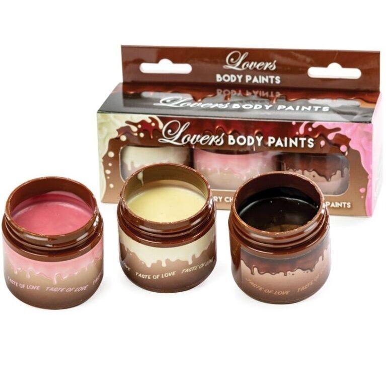 É hora de mostrar toda a sua arte e brincar com o seu casal de uma forma muito doce e divertida. As tintas corporais dos amantes e seus deliciosos sabores de chocolate com morango, chocolate branco e chocolate ao leite serão o complemento perfeito para algumas preliminares divertidas